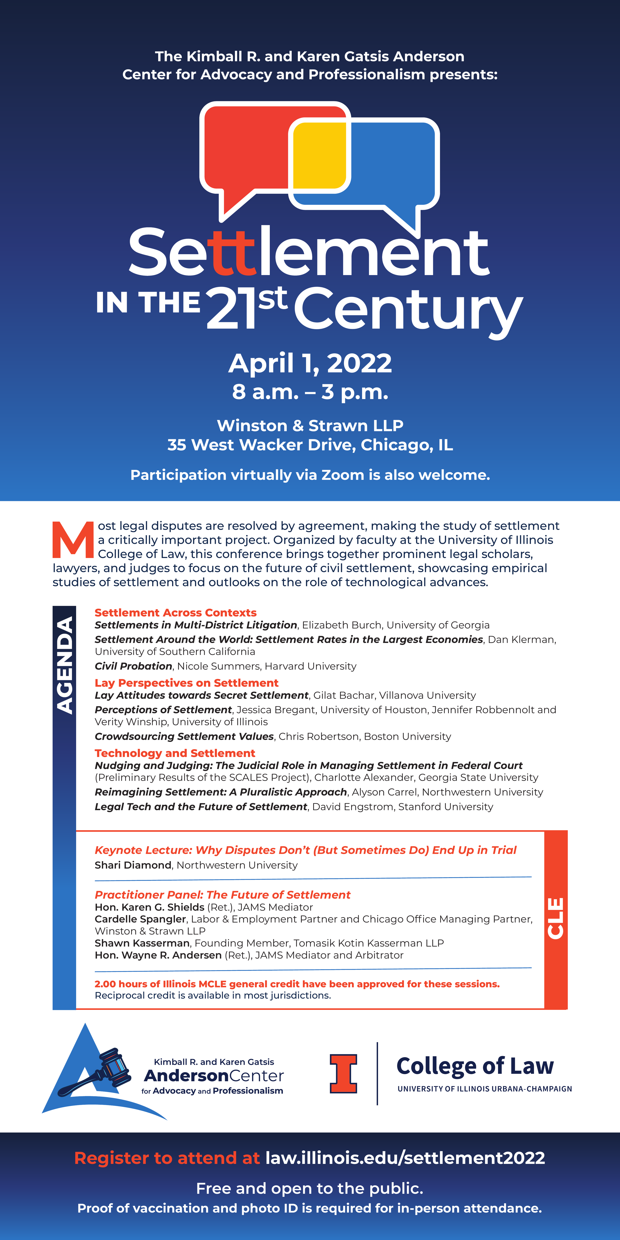 Judges and Public Perceptions of Settlement, Symposium on Judges and ADR, Texas A&M School of Law, Fort Worth, TX (March 2025). – https://info.law.tamu.edu/adr2025